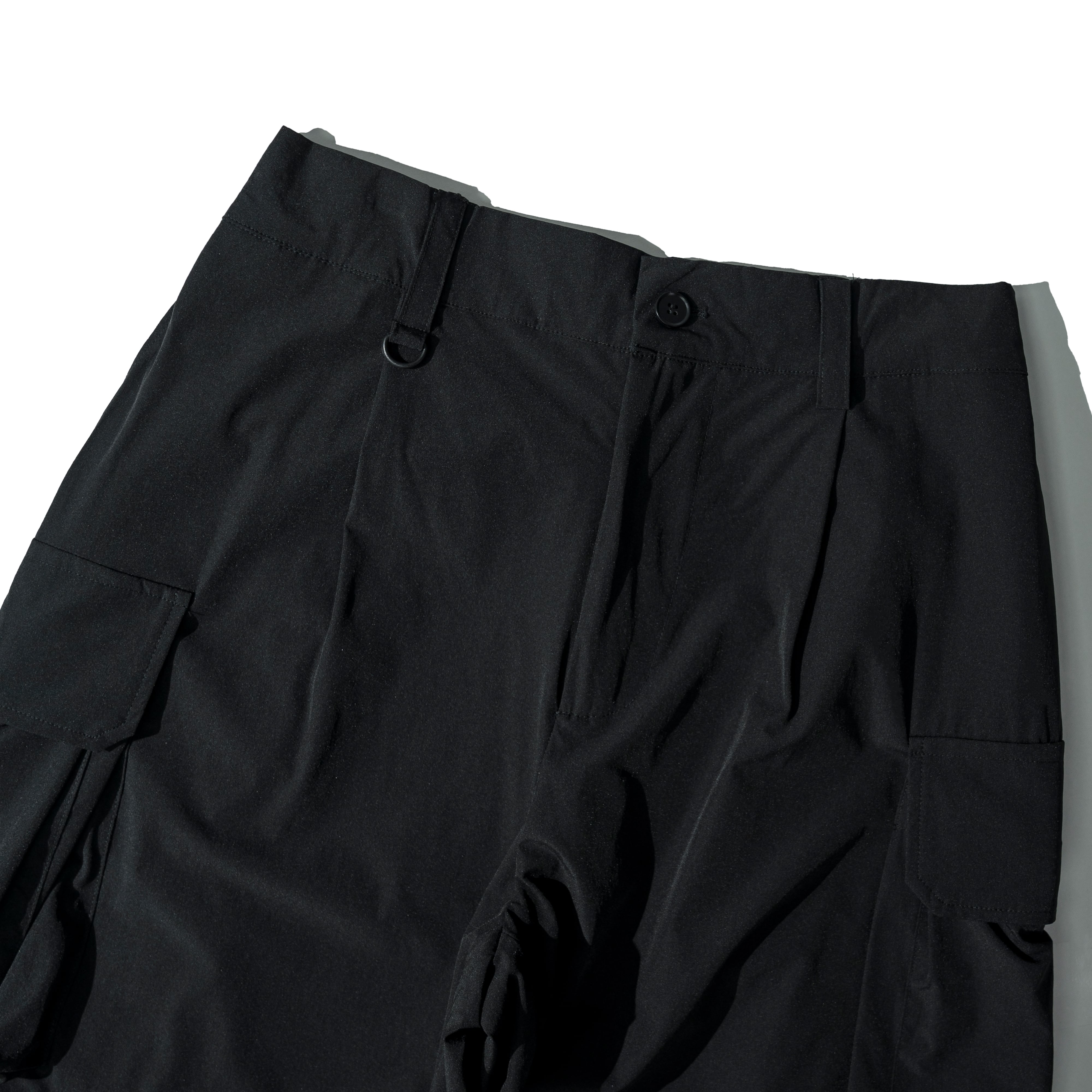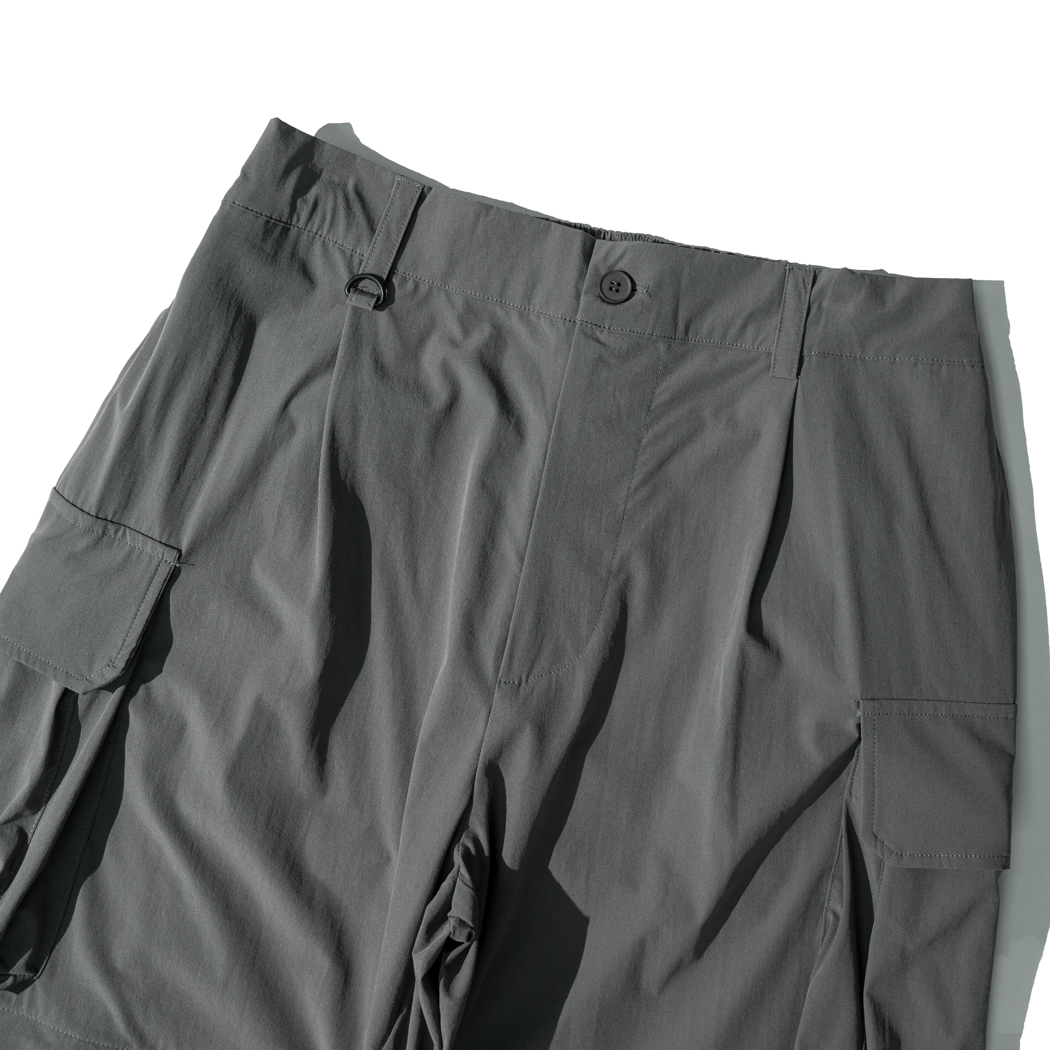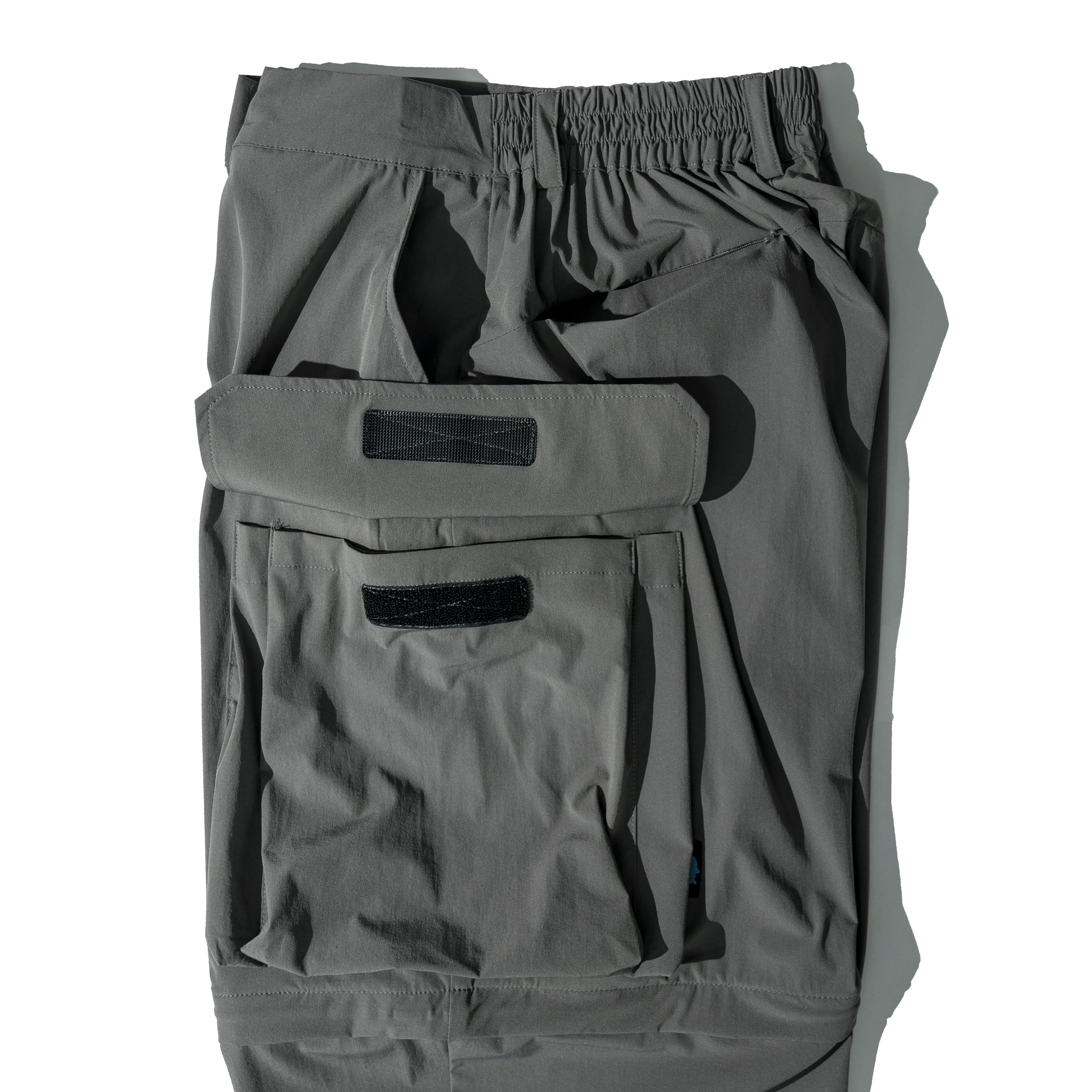 ■高い伸縮性を備えたコンバーチブルカーゴパンツ。ロング/ショーツの2WAY仕様で、1本で2通りの着こなしが可能。